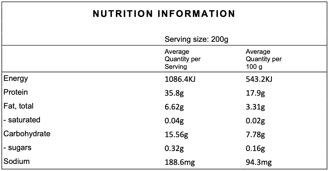 Chicken Breast, Wheat Flour, Wheat Bran, Salt, Sugar, Yeast, Canola Oil. Vitamins (Thiamin, Folate), Maize Flour, Thickener (1422), Salt, Vegetable Gums (412, 415, 464), Emulsifier (464), Acidity Regulators (270, 325, 330), Colour (163), Flavour. Contains: Gluten. May contain: Egg