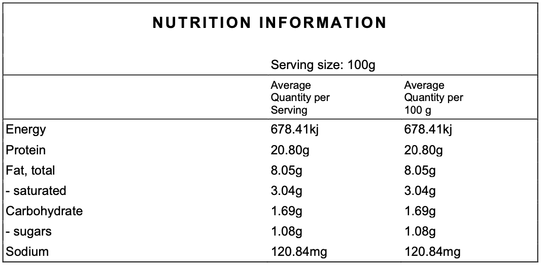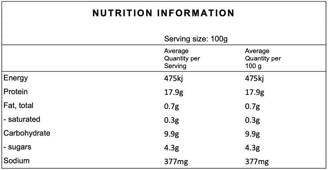 SERVING SIZE: 100g